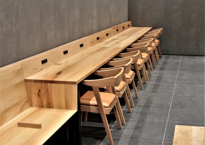 2024.夏、銀座すずらん通りにオープンした新潟情報館 THE NIIGATAのB1F・3Fに家具を製作しました。