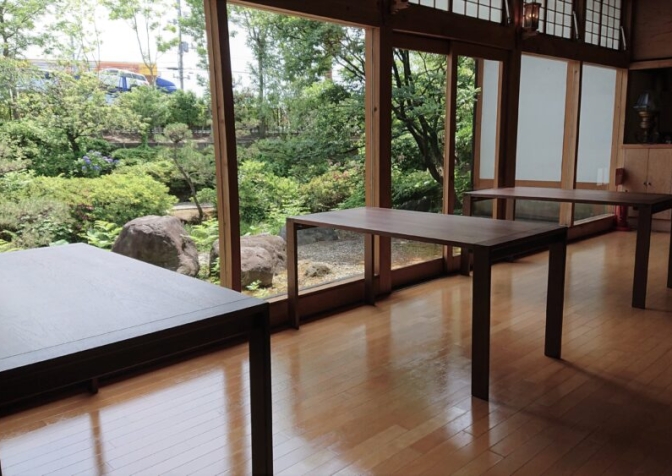 公益財団法人雪梁舎美術館さまの喫茶室にテーブルを製作しました。